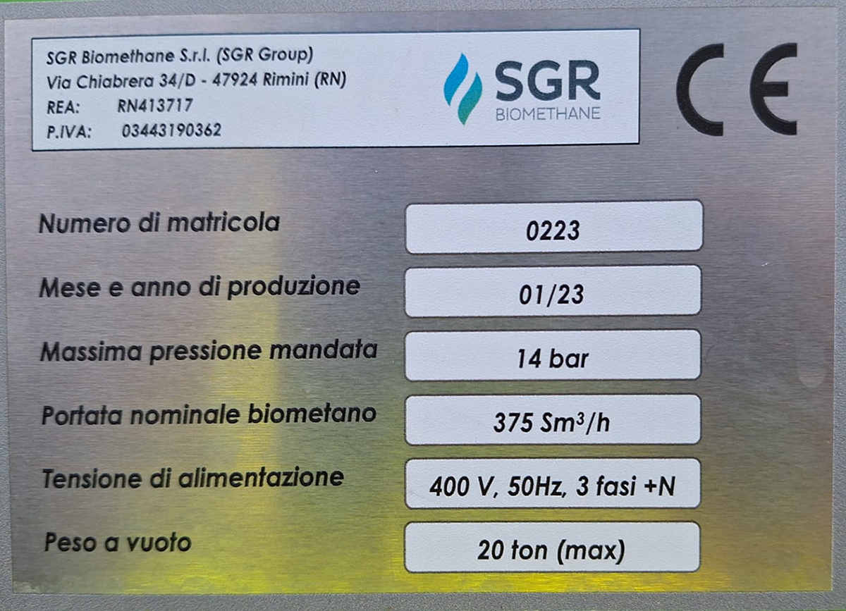 La fornitura comprende l' intera linea del gas dalla flangia di uscita della Digestione Anaerobica fino all'immissione nella rete SNAM del biometano prodotto.